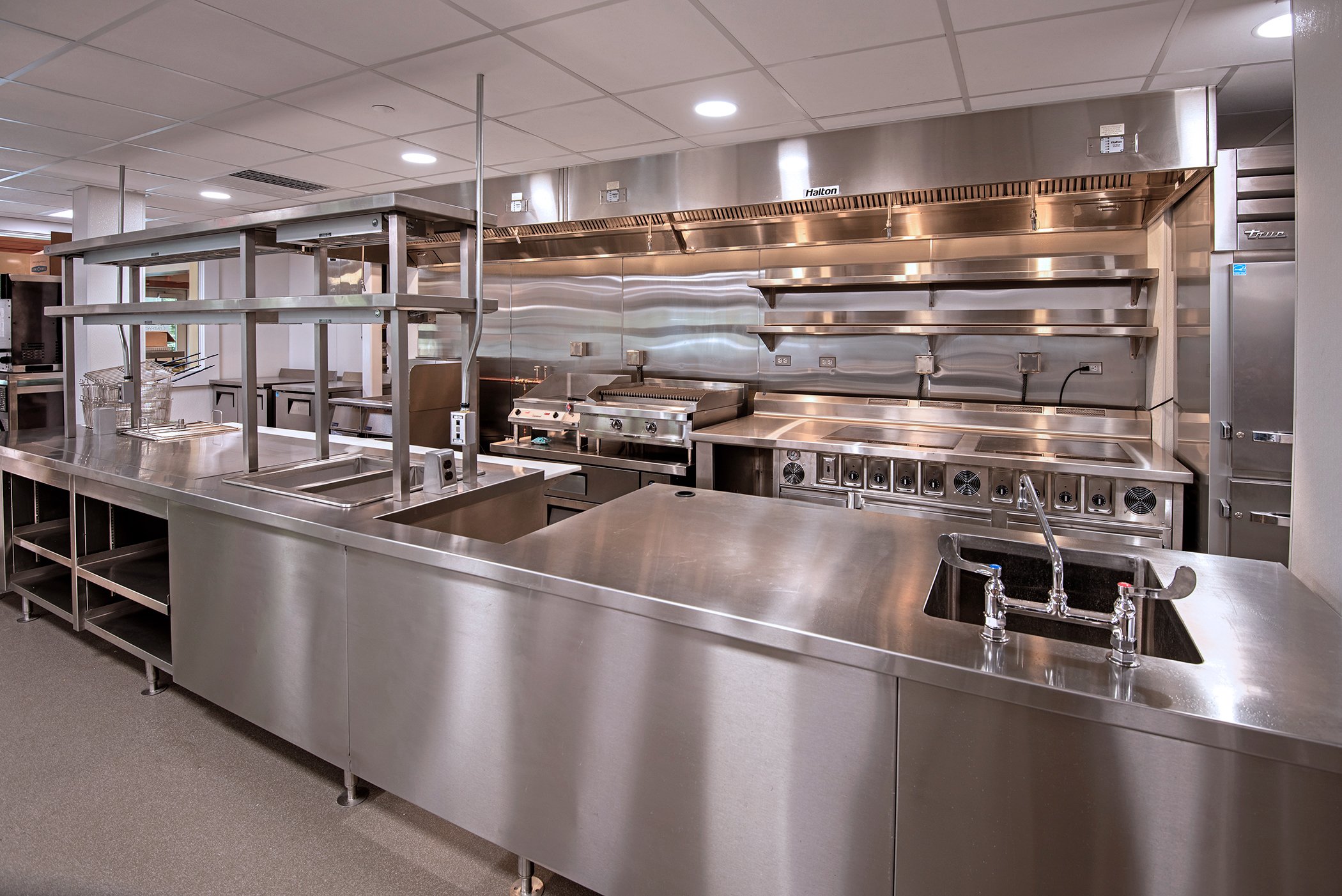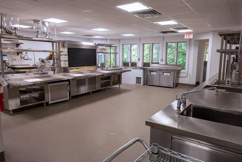 a 3,500 SF Multi-phase new kitchen and existing kitchen renovation performed while maintaining full kitchen operation to serve the entire community. Phase 1 comprised of creating a new kitchen in an existing smaller dining room, renovation of walk-in cooler/freezer, salad bar relocation and main dining room millwork additions. Upon turnover of the new kitchen the existing kitchen was renovated in multiple phases carefully planned to meet the needs of kitchen staff and involved new flooring and kitchen equipment and associates mechanical and electrical work.
